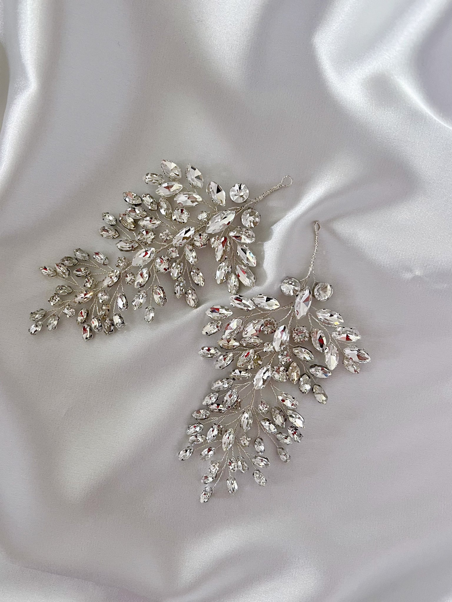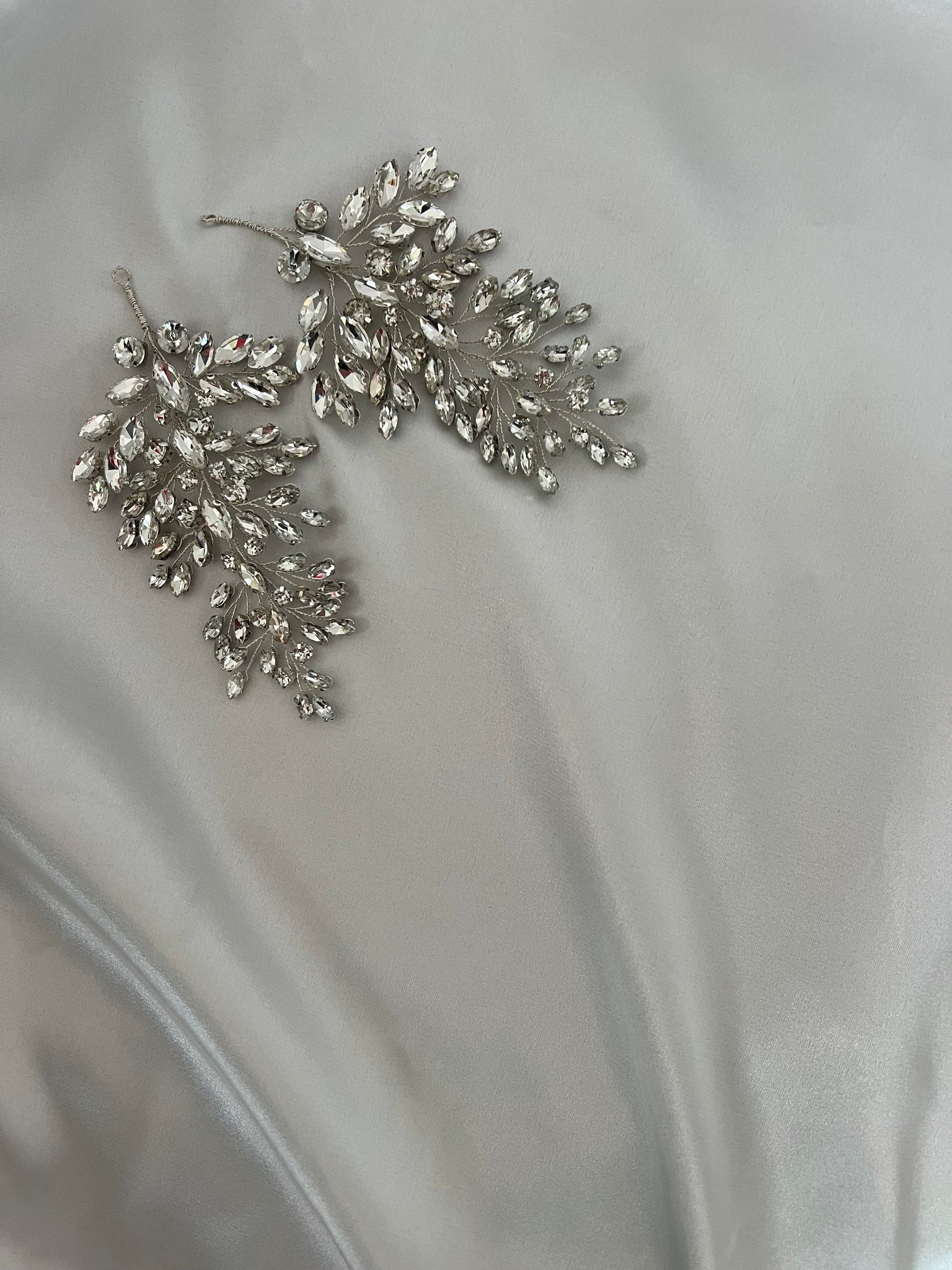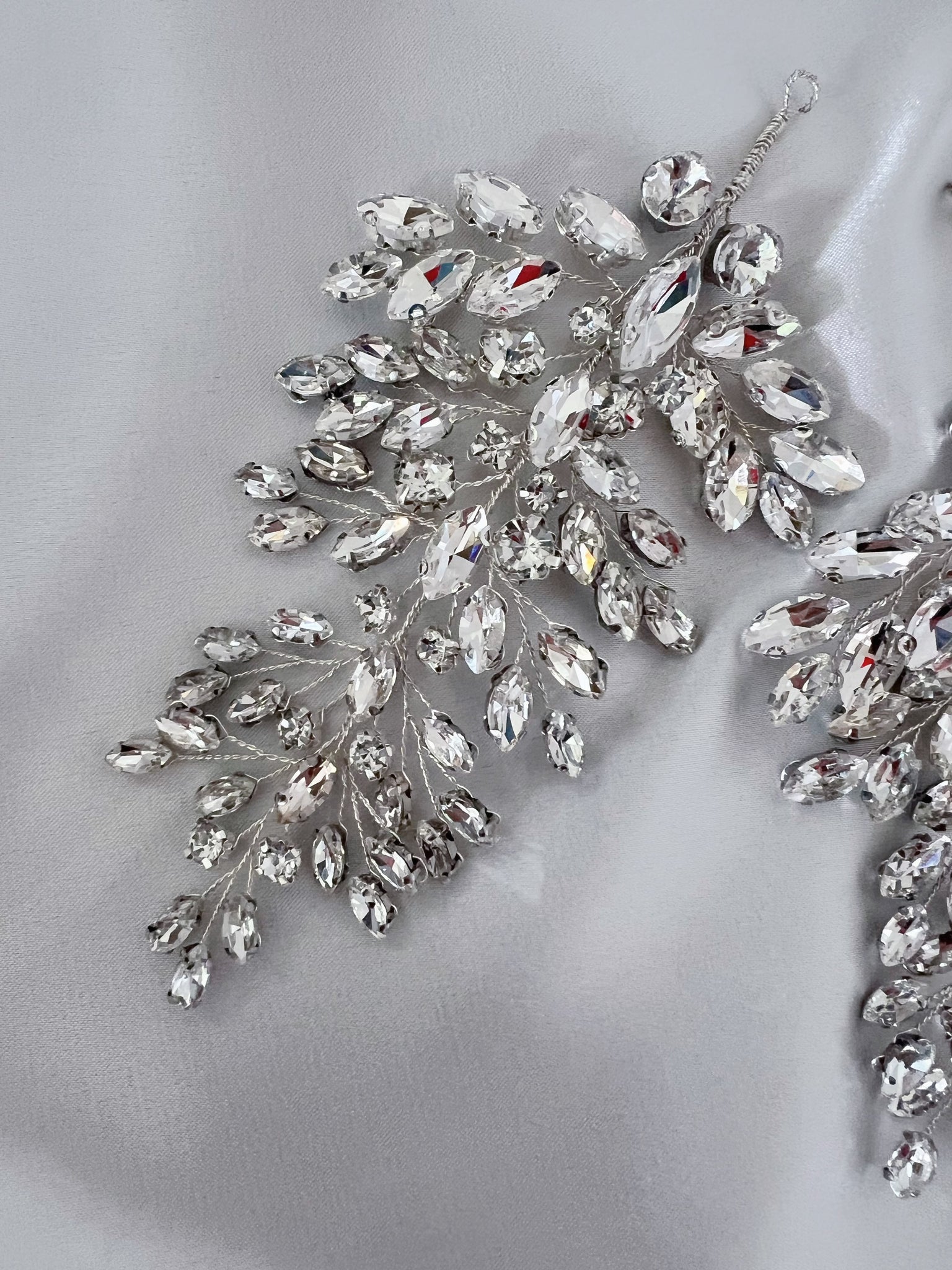 Il doppio tralcio "Lorena" è l'accessorio perfetto per i capelli della sposa. Ricco di strass scintillante, questo elemento aggiunge un tocco elegante, impressionante e prezioso al tuo look da sposa. Non passa inosservato e renderà il tuo giorno ancora più speciale.