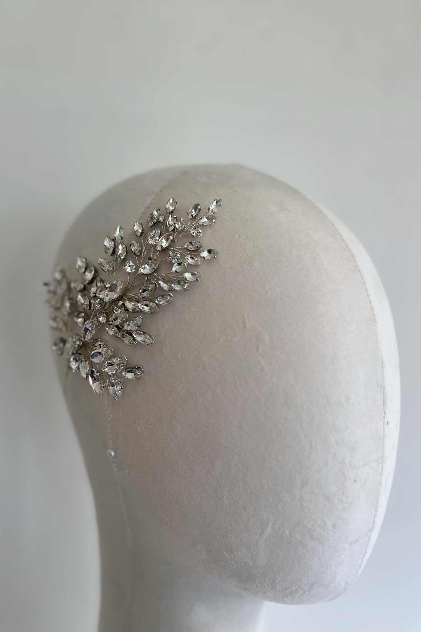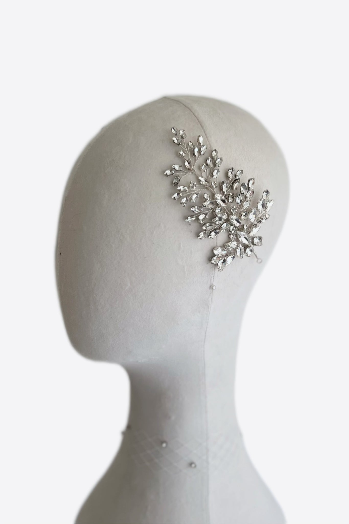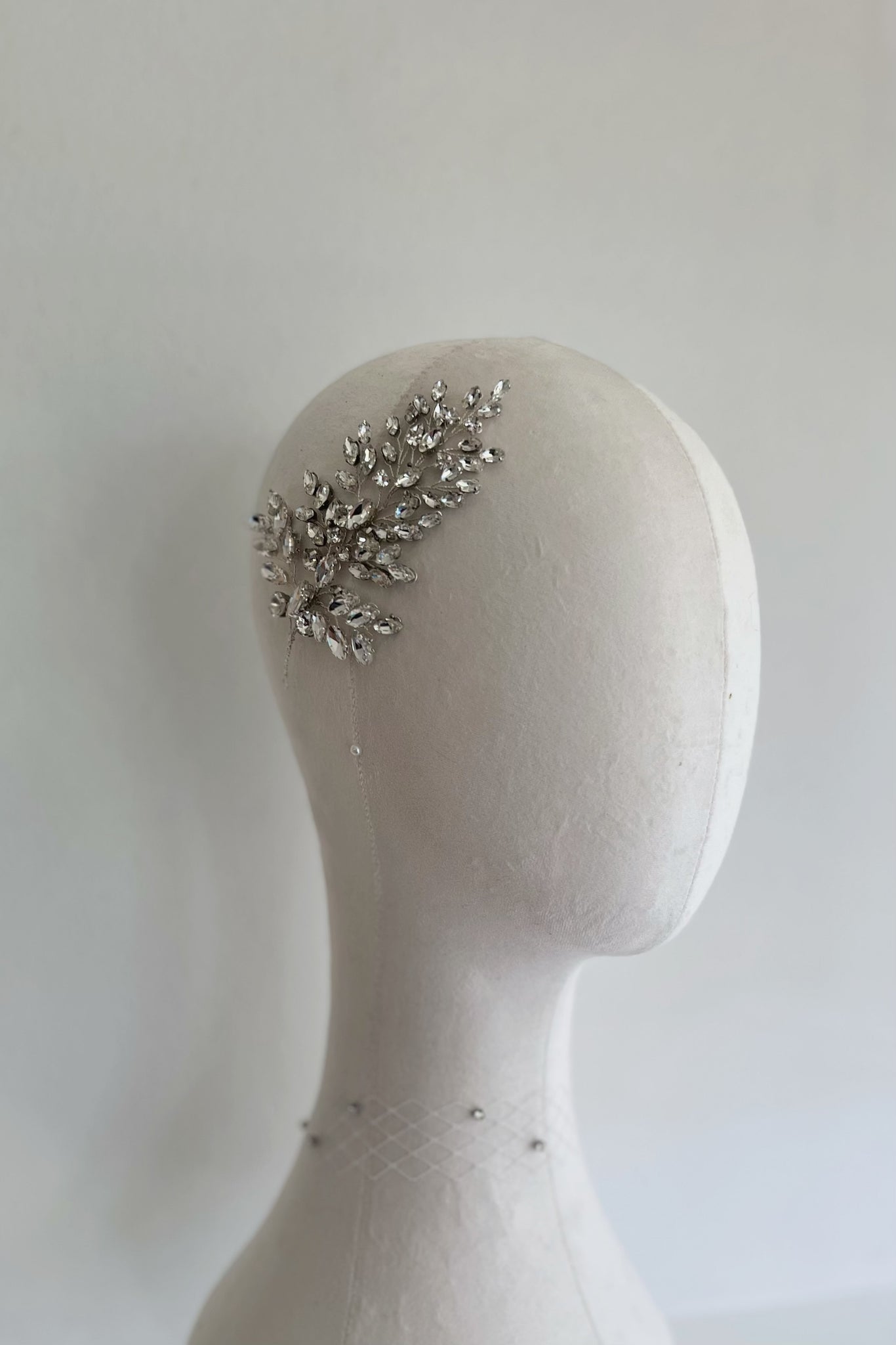 Il doppio tralcio "Lorena" è l'accessorio perfetto per i capelli della sposa. Ricco di strass scintillante, questo elemento aggiunge un tocco elegante, impressionante e prezioso al tuo look da sposa. Non passa inosservato e renderà il tuo giorno ancora più speciale.
