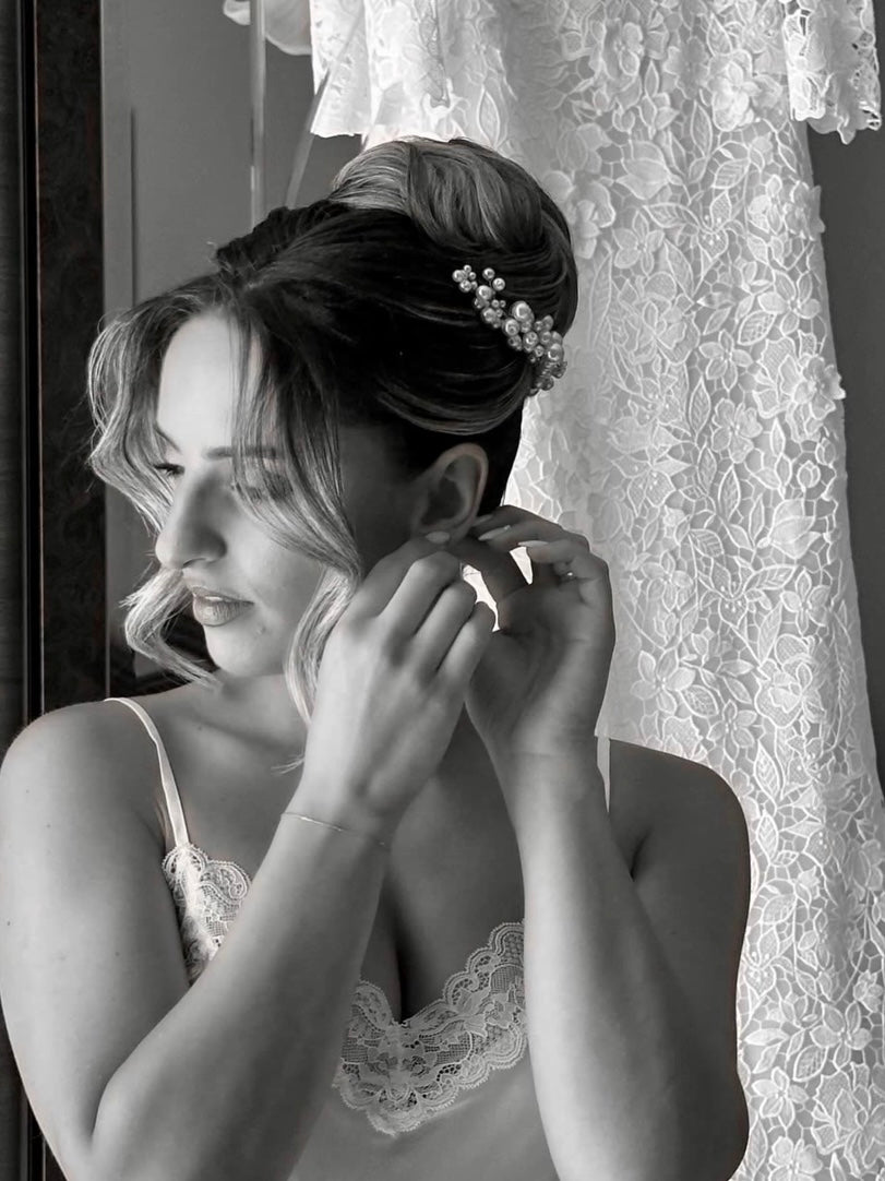 è un'opzione classica, ma allo stesso tempo moderna ed elegante, che permette di abbellire qualsiasi tipo di acconciatura. Realizzata a mano con perle di diverse dimensioni, è l'accessorio perfetto per una sposa di buon gusto. Aggiungi un tocco di raffinatezza al tuo look con "Iolanda".